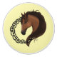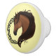 En bruna hästprofil med stamcellstent fungerar i en cirkel med en bakgrund av gult.