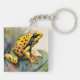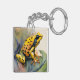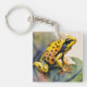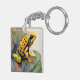 Nyckelkedjan har amfibiansk vattenfärg porträtt på en svartvit och gult-gifensgroda på löv. Ett enkelt naturverk med ett litet giftigt djur.