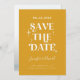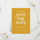 Retro sparar datumkortet med ett fult teckensnitt som säger "spara datumet" med moderna stjärnor runt mitten av århundradet. Bakgrunden till färg är kanarisk gult. Du kan lägga till ett foto på baksidan.