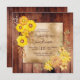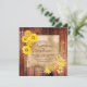 Rustic höstbröllopsinbjudan med träbakgrund och en vattenfärgskonstruktion. Smör gult vild ro och blommor med sage och brunt löv.