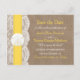 Bröllopsamlingen i gult och dollar är en fantastisk design med en underbar rustik-överlappningseffekt med en romantisk vintage vit snöre-effekttrim avslutat med en bedövande sand-dollar och ett gult-band. De här besparingarna kan vara personlig för ditt speciella tillfälle och göra perfekten känd för bröllop. *Observera att Zazzle endast säljer tryckta produkter så att den här artikeln inte har något riktigt material som täcker snöre, sand-dollar eller band.
