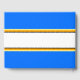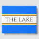 Den här färgstarka sportiska designen innehåller text inuti en vit mittpunkt rand som är markerad med svart, gult och orange streck mot en ljusblå bakgrund med SJÖ skriven över designen. Texten kan vara personlig.