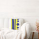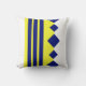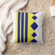 Gult Blåa geometriska rutor linjer dekorativ kudde.