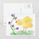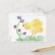 Målning av lite gult chick som luktar lila blommor. ©janet Palaggi