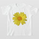 Ett isolerat foto av en gult daisy fotograferat efter en regndusch och visar de nya regndropparna på petalerna