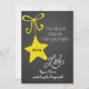 En ritbordsbakgrund med vackra scrollsar av gult och vit text som lyder "God jul" på framsidan och "Kan alla dina dagar vara fina och klara" på baksidan. Det här vackra, skräddarsydda julfotokortet har flera stjärndekorationer och en fågel i en kapslad design och områden som du enkelt kan lägga till namn, det aktuella året och foto!