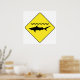 Poster utskrift av en gult trafikskylt med en "varningshaj"-ikon.