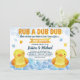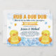 Ruba en Dub Dub Rubber Ducky Baby Shower-inbjudan - det finns två sak i livet som vi aldrig är riktigt förberedda på... twillingar. Det behöver inte vinge när det gäller inbjudningar till babydusch. Vi har har att du är helt täckt med den här söta gummidammduschinbjudan för könsneutrala twillingar. Garanterad att passa in "räkningen" för din speciella dag. Med två klassiska, lömska små gummidamm flytande med några smakliga vattenfärgsbubblor i bakgrunden. Perfektens inbjudan att ställa in högerna och verkligen "kvack" åt dina gäster.