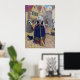 En gammal kvinna har tagit med sin katt och sin kvast ut på de kullerstensgatorna i en europeisk stad och planerar att flyga iväg i denna vintageillustration av den gamla barnramsan från 1919.