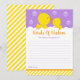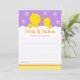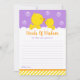 Detta söta och roliga kort med ord av visdom har en bedårande gul anka och ankunge i vita såpbubblor på en lila bakgrund med ett orangefärgat band och gula ränder. Texten kombinerar handskriven stil och typsnitt utan seriffer för en snygg och modern utseende. Detta är perfekt för en baby shower.