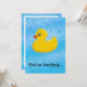 Knip knip säger gummiankan. Cool personlig design med en ljusgul figur och en blå bubblande vattenbakgrund. Perfekt för badtid, pool tid eller bara för skojs skull.