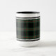 Kaffe mugg med tartan för Klan Gunn och dess septer, inklusive Nelson och Williamson. Mörk grönt och svarta skotska flydde mönster från 1842, med ljusröda accenter.