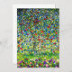 Kort med Gustav Klimts målning Apple Träd, I (1912). Ett färglöst rödäpple träd står i en grönt fält av lila, rosa, gult och vita blommor. En perfekt för fläkt av Art nouveau och österrikisk konst.