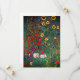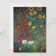 Kort med Gustav Klimts oljemålning Farm Garden med solblommor (1907). En vacker trädgård av solblommor och grönblå, röd, lila, rosa och vita blommor. En underbar gåva till fläkt av Art nouveau och österrikisk konst.