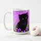 Kaffe Mugg med en Gustav Klimt-katt! Denna flytande kattunge ligger i en grönt fält i lila blommor. En perfekt gåva till kattälskare och österrikiska konstentusiaster!