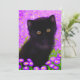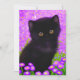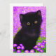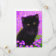 Kort med Gustav Klimt-katt! Denna flytande kattunge ligger i en grönt fält i lila blommor. En perfekt gåva till kattälskare och österrikiska konstentusiaster!