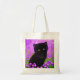 Tote Bag med en Gustav Klimt-katt! Denna flytande kattunge ligger i en grönt fält i lila blommor. En perfekt gåva till kattälskare och österrikiska konstentusiaster!