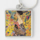 Gustav Klimt - Dam med Fläkt Fyrkantig Silverfärgad Nyckelring