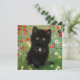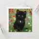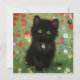 Kort med Gustav Klimt-kattunge! Det svarta kattunge bär en silver och sitter i en fält av rött, blått, vitt och gula blommor. En underbar gåva till kattälskare och österrikiska konstentusiaster!