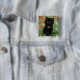 Knapp med Gustav Klimt-kattunge! Det svarta kattunge bär en silver och sitter i en fält av rött, blått, vitt och gula blommor. En underbar gåva till kattälskare och österrikiska konstentusiaster!