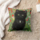 Pillow med en Gustav Klimt-kattunge! Det svarta kattunge bär en silver och sitter i en fält av rött, blått, vitt och gula blommor. En underbar gåva till kattälskare och österrikiska konstentusiaster!