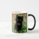 Magic Mugg med en Gustav Klimt-kattunge! Det svarta kattunge bär en silver och sitter i en fält av rött, blått, vitt och gula blommor. En underbar gåva till kattälskare och österrikiska konstentusiaster!