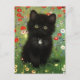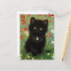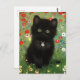 Vykort med Gustav Klimt-kattunge! Det svarta kattunge bär en silver och sitter i en fält av rött, blått, vitt och gula blommor. En underbar gåva till kattälskare och österrikiska konstentusiaster!