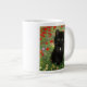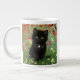 Kaffemugg med en kattunge av Gustav Klimt! Denna svarta kattunge bär en silverhalsband och sitter i en äng med röda, blå, vita och gula blommor. En underbar present till kattälskare och österrikiska konstintresserade!