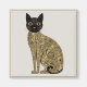 Denna design är en stiliserad illustration av en svart katt på Gustav Klimts konstnärliga sätt. Katten är placerad i en sittställning, försedd med intrikat, dekorativt mönster och motiv som påminner om Klimts namnteckning stil, med geometriska former, blommigt inslag och cirkelformade mönster. Bakgrunden är ett gyllene, texturerat yta med stiliserad löv och blommor, som ytterligare förbättrar det kalkesiska estetiska systemet. Det övergripande intrycket är en ren elegans och en dekorativ rikedom, där man blandar ihop djurbilder med dekorativa konstprinciper.