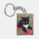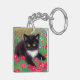 Nyckelkedja med en Gustav Klimt tuxedo-katt! Denna vackra svarta och vita kattunge ligger i fält av röda, blå, vita och orange blommor. En fantastisk-gåva till kattälskare och österrikiska konstentusiaster!