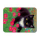 Magnet med en Gustav Klimt tuxedo-katt! Denna vackra svarta och vita kattunge ligger i fält av röda, blå, vita och orange blommor. En fantastisk-gåva till kattälskare och österrikiska konstentusiaster!