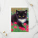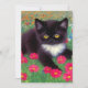 Kort med Gustav Klimt tuxedo-katt! Denna vackra svarta och vita kattunge ligger i fält av röda, blå, vita och orange blommor. En fantastisk-gåva till kattälskare och österrikiska konstentusiaster!