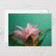 Sidoprofil för Guzmania Bromeliads växt, med rosa blomma och teal grönt bakgrund.