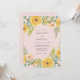 Denna design har en delikat kaskad av gula rosor och mjuk grönska, som frammanar en romantisk och luftig atmosfär. Den konstnärliga akvarellstilen ger en målerisk charm, perfekt för en lättsinnig firande. En mjuk rosaton underton kompletterar de livliga blomsterdelarna för en verkligt förtrollande look.