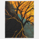 Detta suggestiva abstrakta konstverk utforskar den djupa kopplingen mellan tillväxt, förankring och förvandling genom det kraftfulla symboliken av ett träd i skymningen. Starka svarta grenar sträcker sig uppåt mot en lysande himmel av varmt bärnsten och mjuk teal, medan lysande gyllene rötter flyter nedåt in i mörkret och skapar en slående visuell balans mellan ljus och skugga. Kompositionen känns både dramatisk och meditativ och inbjuder till reflektion över var vi kommer ifrån och vad som upprätthåller oss.