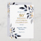 Guldbröllopsfirande - Guld och marinblått bröllopsinbjudningskort. Samla vänner och familj för att hedra ett speciellt par på deras 50-årsdag. Denna gyllene 50-årsjubileumsfestinbjudan är designad med guld- och marinblå text och bladaccent. Texten innehåller: 50-års bröllopsfirande, Hedrar, Passets namn och evenemangsdatum. Texten på baksidan innehåller: datum, tid, plats och RSVP-information. För att anpassa, infoga bara dina uppgifter i vår enkla mall och ersätt exemptexten. Obs: denna inbjudan har en matchande utfällbar banner för 50-års bröllopsjubileum tillgänglig.