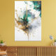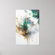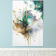 Detta abstrakta verk kombinerar flytande penseldrag i nyanser av smaragdgrönt, vitt och grått med eleganta metalliska guldstråk. Den organiska texturen flätas samman med stänk av guld och eteriska former och skapar en kontrast mellan lätthet och intensitet. Kompositionen frammanar naturliga element som marmor, moln eller kosmiska nebulosor och bibehåller en sofistikerad och samtida känsla. Användningen av guld ger en touch av subtil lyx, vilket gör den idealisk för moderna och eleganta miljöer.