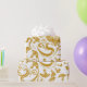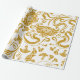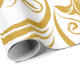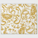 gyllene blommotiv och virvlande mönster på vit bak presentpapper