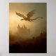 En majestätisk vit-guld-drake glider med fullt utfällda vingar genom tjock, glödande dimma ovanför ett urgammalt slott vid soluppgången. Varmt gyllene ljus badar scenen och skapar en drömlik, eterisk atmosfär fylld av fladdrande partiklar och avlägsna fåglar. Detta episka fantasikonstverk fångar ren förundran och mytisk skönhet, perfekt för affischer, canvastryck, telefonväskor, musmattor, kastkuddar, gobelänger och dekorationer som för legendariskt äventyr in i vilket rum som helst.