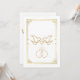 Fira din speciella dag med denna design med gyllene duvor och bröllopsringar, inramad av en sofistikerad kant. Perfekt för traditionella, formella eller moderna bröllop, kan denna eleganta inbjudan enkelt anpassas med namn, datum och evenemangsinformation. Gör ett varaktigt intryck på gästerna med dess lyxiga gyllene accenter och tidlösa romantik!