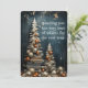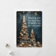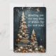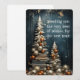 Denna sofistikerade gratulationskort är det perfekta sättet att skicka dina bästa önskningar för det nya året. Det visar en trio eleganta, vita julgranar prydda med skimrande guld- och bronsdekorationer, vilket skapar en lyxig och festlig känsla. Bakgrunden är en djup, midnattsblå himmel, varsamt texturerad med mjukt snöfall och gyllene bokeh som liknar ömtåliga snöflingor eller avlägsna stjärnor. Vid granarnas fot tillför en genomtänkt trave böcker en känsla av värme och intellekt, som antyder ett år fyllt med kunskap och tillväxt framöver. Budskapet "Skickar dig de allra bästa önskningar för det nya året" är graciöst skrivet överst i en matchande guld