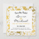 Guld elegant blomsterbröllopsinbjudan. Detta är en modern bröllopsinbjudan med eleganta guldblommor i bakgrunden. Matchande RSVP- och returadressetiketter finns också tillgängliga.
