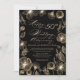 50-årsjubileums inbjudan med stiliserade gyllene tindrande exotiska blommor på svart bakgrund. Du kan anpassa texten efter dina behov. Bakgrundsfärgen kan ändras.