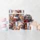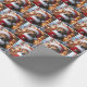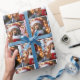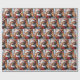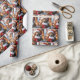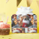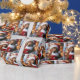 En gyllene hämtare som bär en julhatt framför ett dekorerat Julgran, försedd med glansande ljus med ett strumpor i munnen