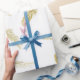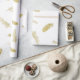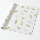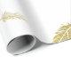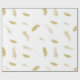 Elegant presentpapper med mönster med gyllene fladdrande fjädrar på vit bakgrund