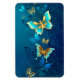 Flygande guld, smyckesfjäril på blå texturerad bakgrund. Design med fjärilar.