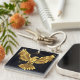 En fantastisk bild av en gyllene, intrikat designad geometrisk örn med utbredda vingar, placerad mot en abstrakt mörk bakgrund med mystiska mönster. Perfekt för teman som styrka, kraft och frihet.