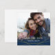 Detta fyrkantiga bröllopskort med sparad datum innehåller en fotoram som fyller hela framsidan av kortet. En marinblå gradient och enkla gyllene linjer accentuerar fotots nedre del. Anpassad text låter dig lägga till namnen på bruden och brudgummen samt deras kommande bröllopsdatum och plats.