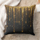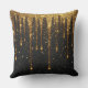 Gyllene glitter dropar över mörk bakgrund kudde