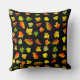 Vackra, eleganta moderna gyllene, gröna, orange höstlöv på svart kastkudde.